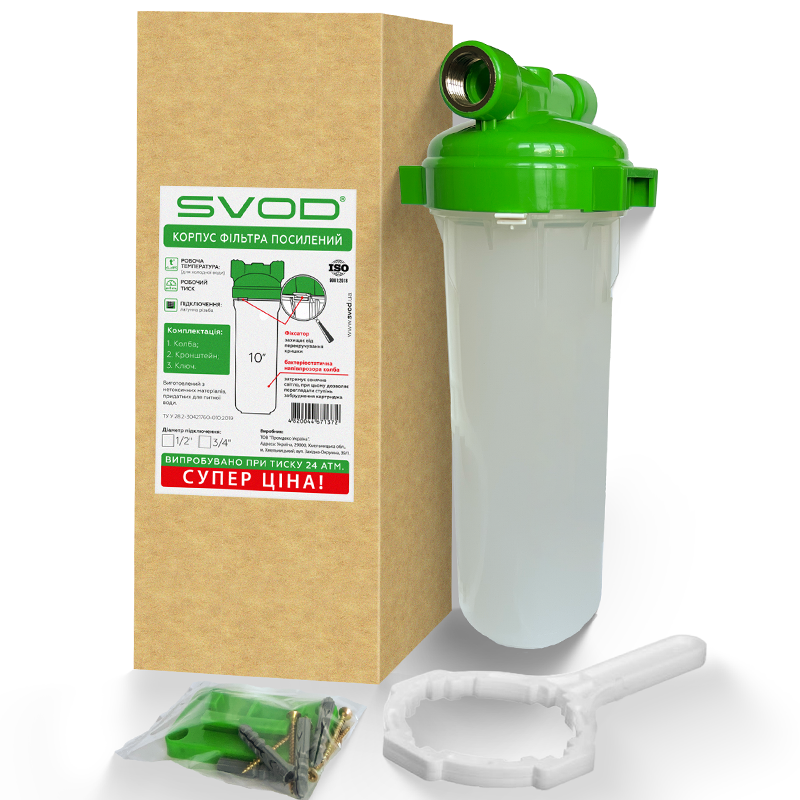 Купити корпус магістрального фільтра 10" для холодної води L3/4 SVOD, Ви можете онлайн оформивши покупку на нашому сайті istoki-m.com.ua або зв'яжіться телефоном з нашими менеджерами для оформлення замовлення.